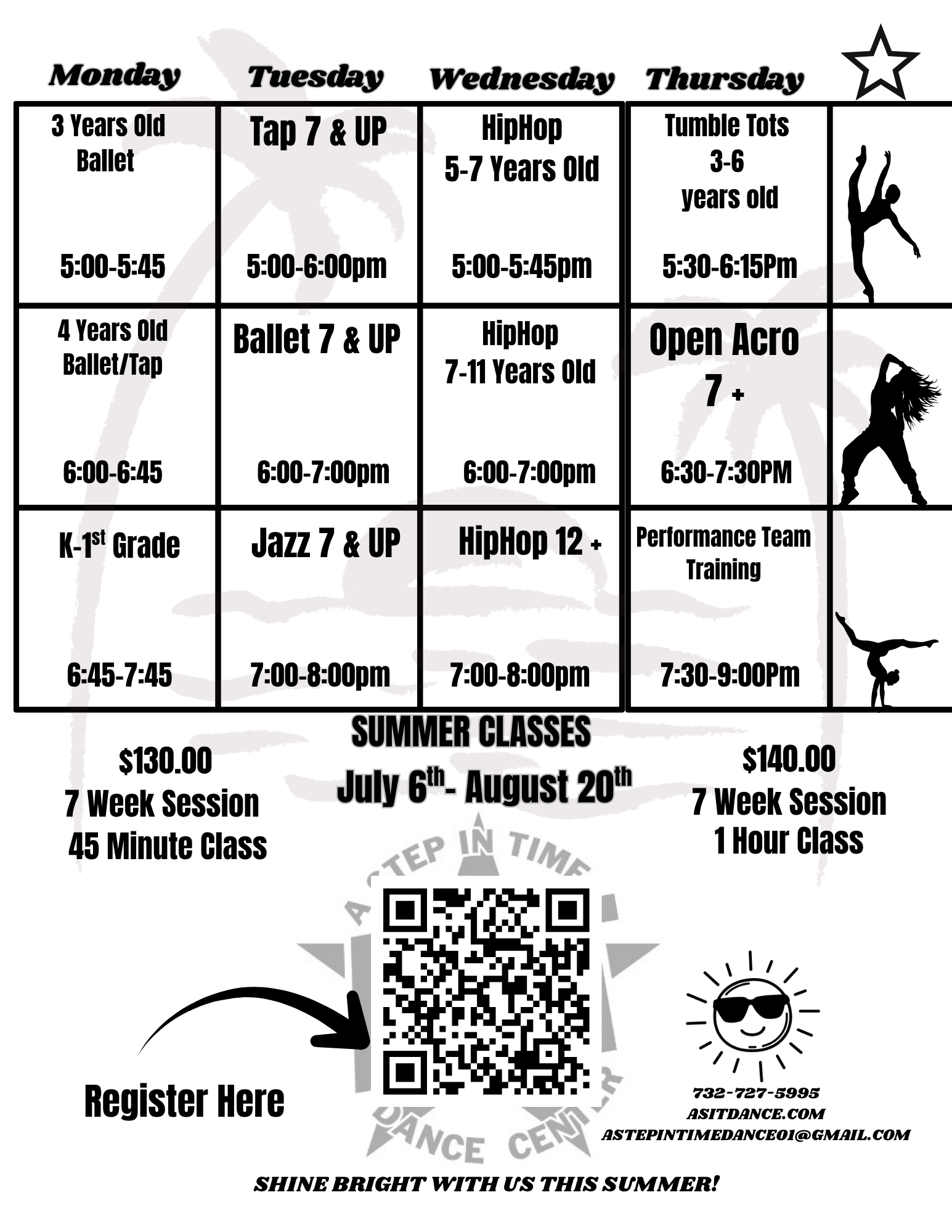 Contact Us at (732) 727-5995 or email at AStepInTimeDance01@gmail.com